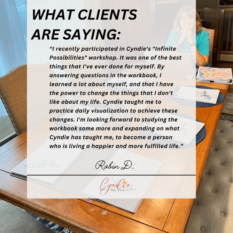 Hi, I’m Cyndie, a Certified Infinite Possibilities Trainer, creative event planner, and heart-first community builder guided by intuition and empathy. I believe in the magic that happens when mindset, community, and purpose meet. My work blends grounded strategy with soulful creativity to help people see possibility in every moment.